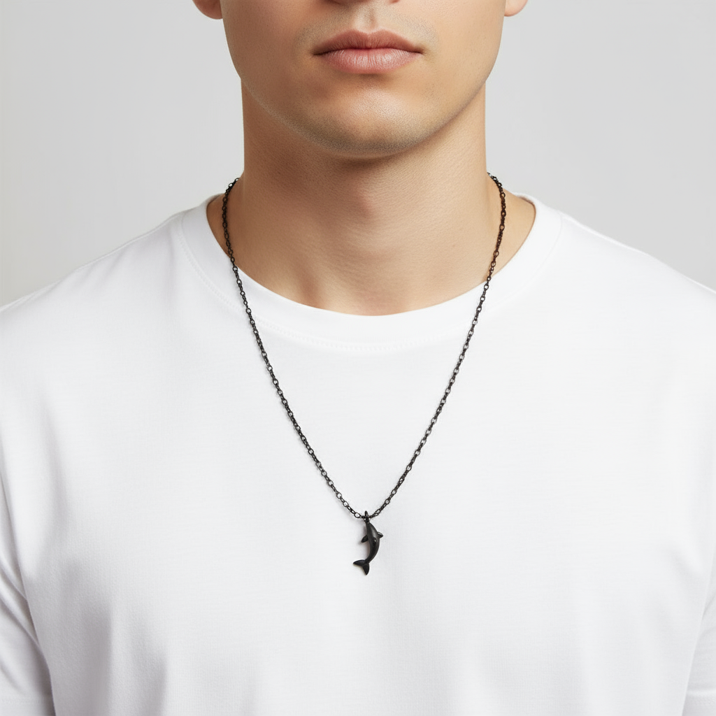 Steel necklace with OCEAN MINI dolphin pendant