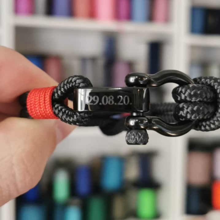Izrađena korištenjem samo najfinijih materijala, svaka narukvica u ovoj kolekciji izrađena je od visokokvalitetnog pomorskog užeta od 4 mm i vakuumski obojenog crnog hipoalergenog okova od nehrđajućeg čelika od 4 mm. Okov je također podesiv za 0,5 cm kako bi se osiguralo udobno pristajanje za bilo koju veličinu zapešća.