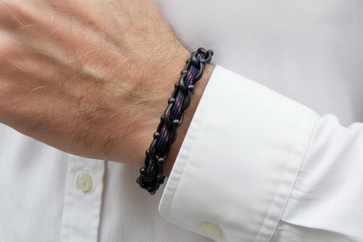 U skladu s najnovijim trendovima nakita, OCEAN MAXI prikazuje razigrani štih sa živopisnim paracordom koji je utkan kroz cijeli dizajn, stvarajući očaravajući kontrast koji nadopunjuje uglađenost titanijskog čelika.